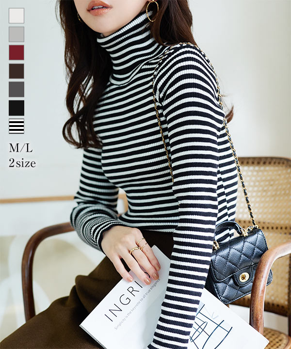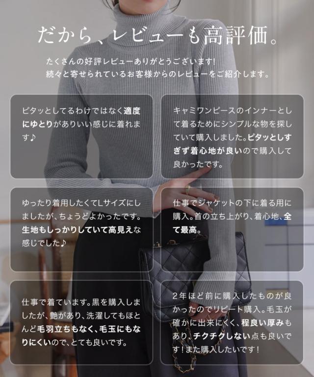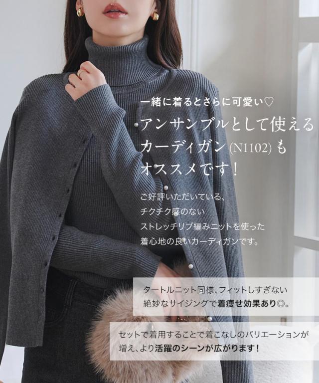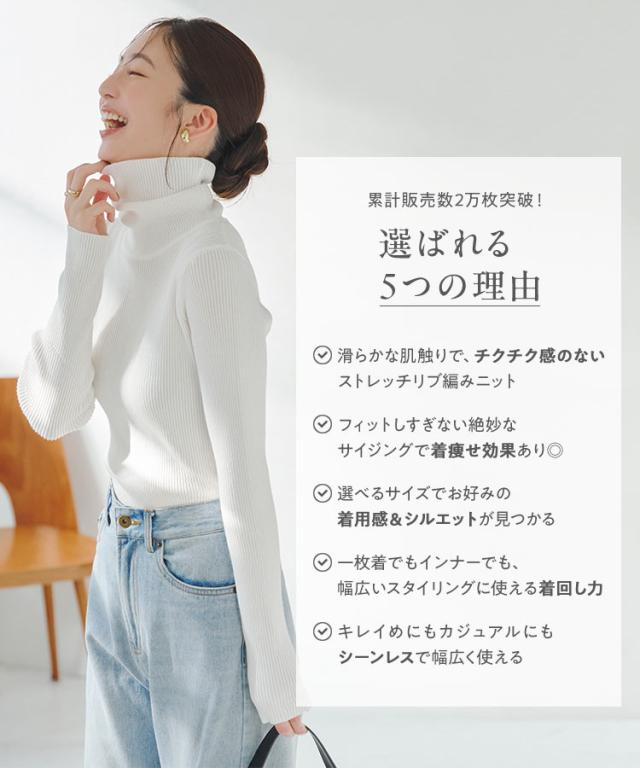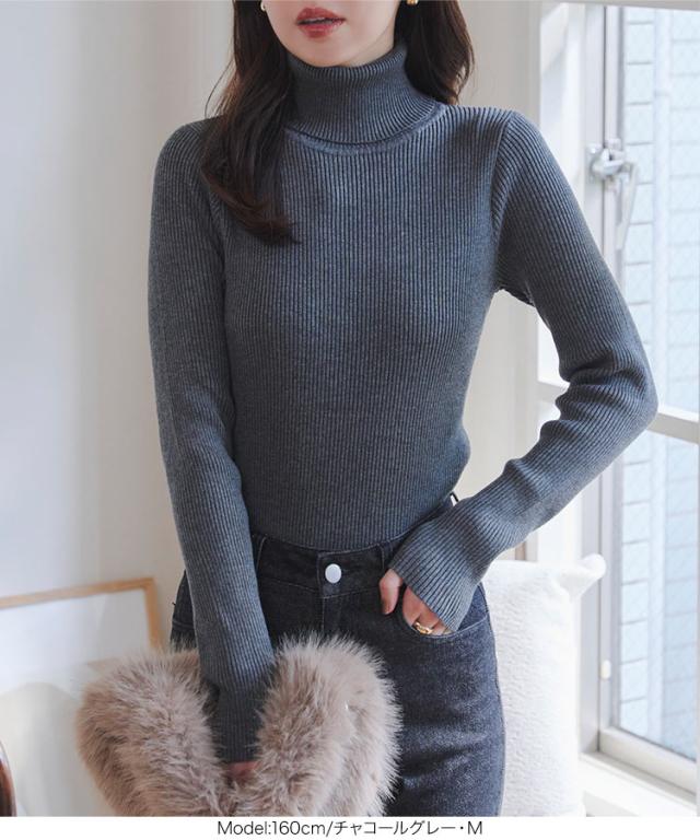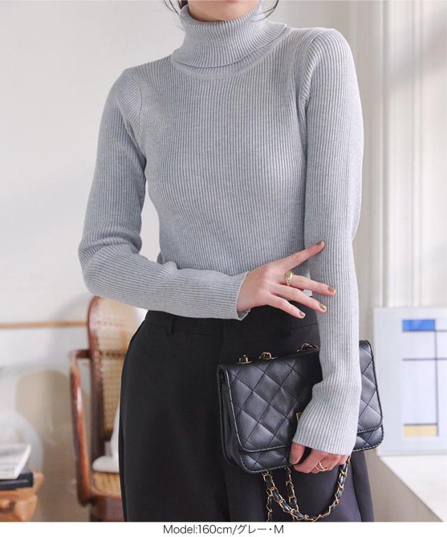 ベーシックで使いまわししやすいハイゲージタートルニット。シンプルなリブ編みなので色違いで何枚でも欲しいアイテム。