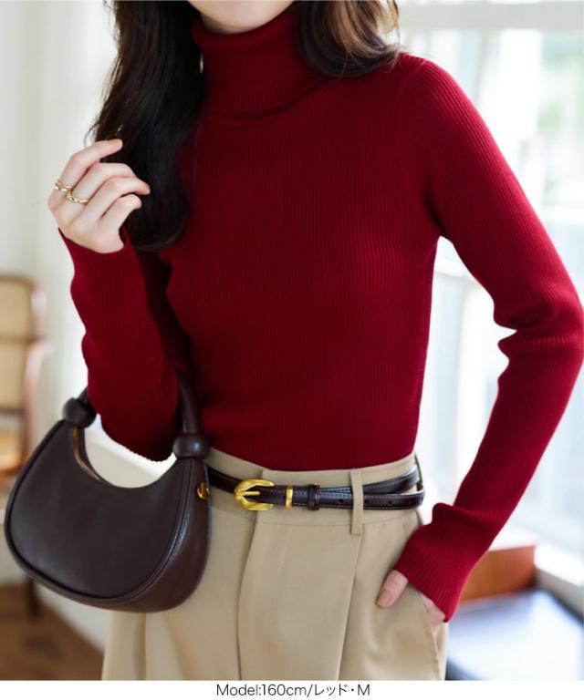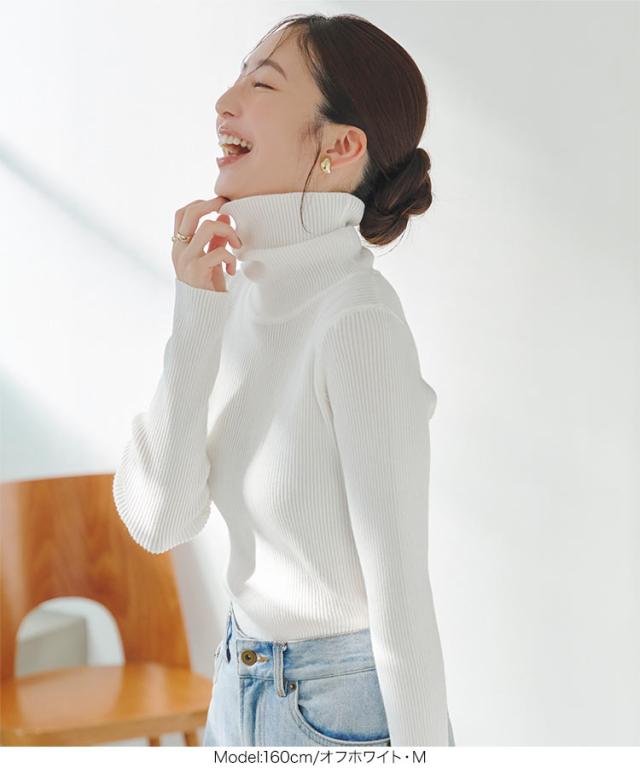 新作 ニット トップス レディース 長袖 [ ML ] ベーシック リブ タートルネック ストレッチ C2420 入荷済 セーター カットソー ハイゲージ 薄手 黒 ブラック ホワイト 冬 秋 きれいめ 通勤 スーツ インナー