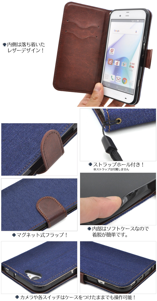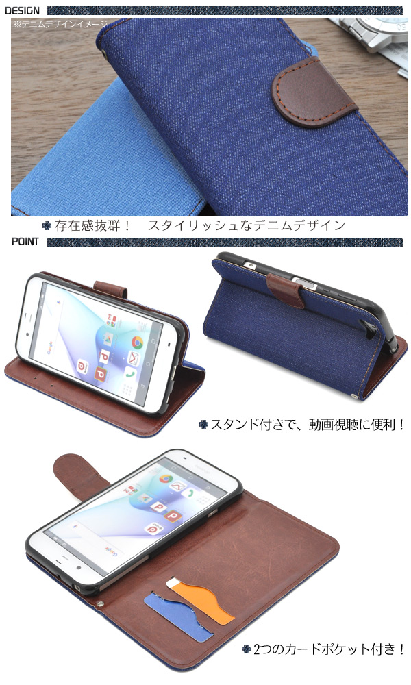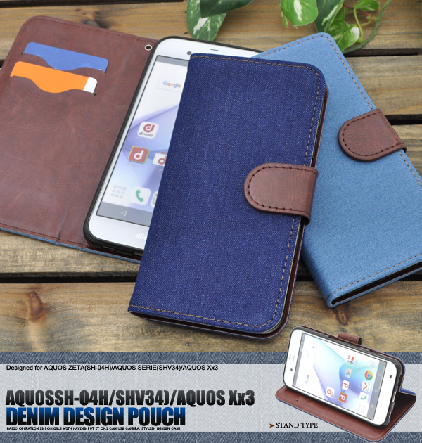 AQUOS ZETA SH-04H docomo AQUOS SERIE SHV34 au AQUOS Xx3用 デニムデザインケースポーチ 手帳型