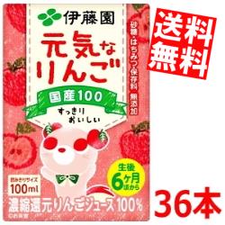 送料無料 伊藤園 元気なりんご 100ml紙パック 36本入(18×2) (3本パック×12) 濃縮還元りんごジュース100%