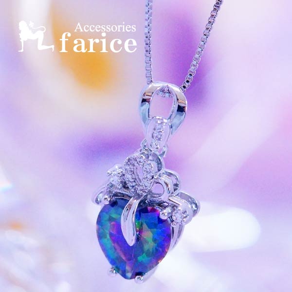 ミスティックトパーズ ハート 冠 ティアラ 一粒石 ネイビー パープル 虹色 シルバーカラー レディース ペンダント ネックレス