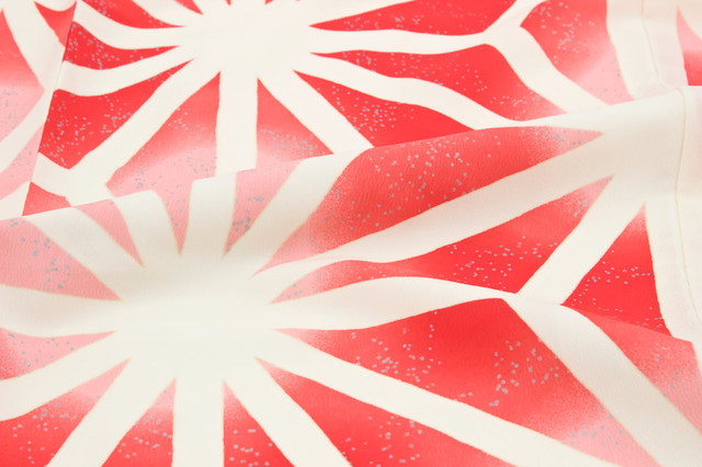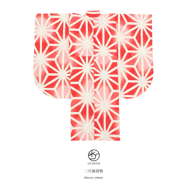 ぼかしに入った地に麻の葉のレトロモダンな柄ゆきです。
