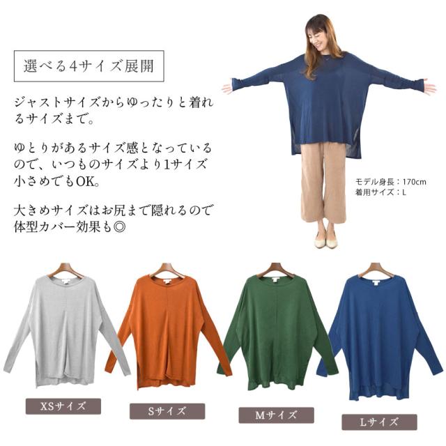 【ラッシュガード ドルマン ニット ニットソー レディース チュニック スリット 長袖 カットソー 大きいサイズ 薄手 ロング ゆったり とろみ ドルマンスリーブ トップス 切り替え 無地 イレヘム シンプル ワイド ゆる感 こなれ感 透け感 カジュアル ラフ】