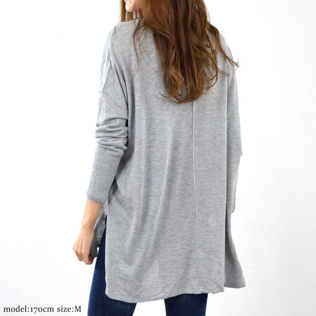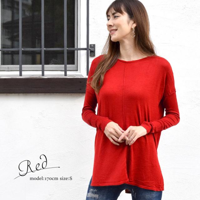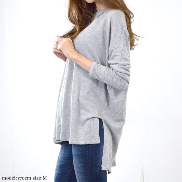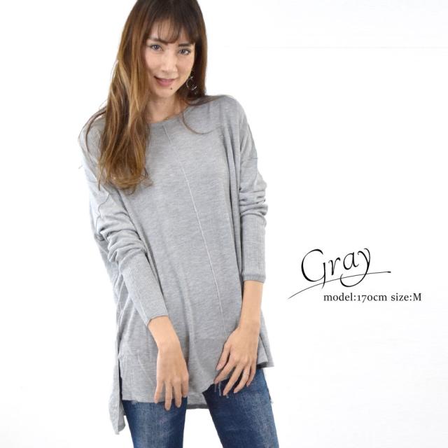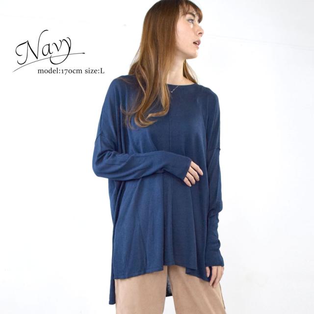 ニット ニットソー ロンT ドルマン レディース チュニック スリット 長袖 カットソー 大きいサイズ 薄手 ロング ゆったり とろみ ドルマンスリーブ トップス 切替 無地 イレヘム ワイド 透け感 オフィスカジュアル 送料無料 fk25 (bdg203)
