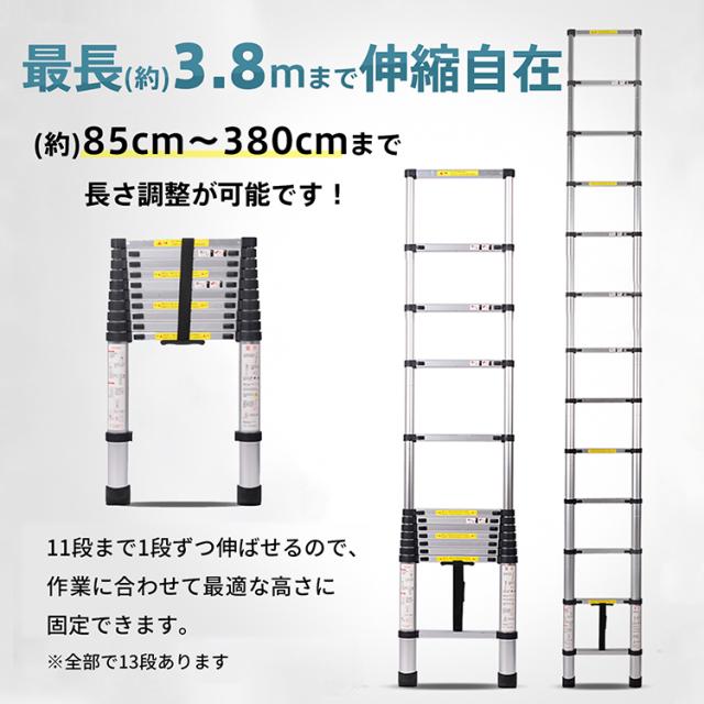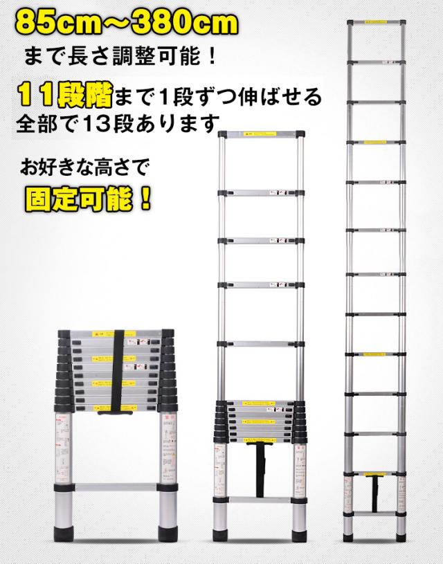 ■13階段まで1段づつ引き伸ばし85cm〜380cmまで長さ調整可能!