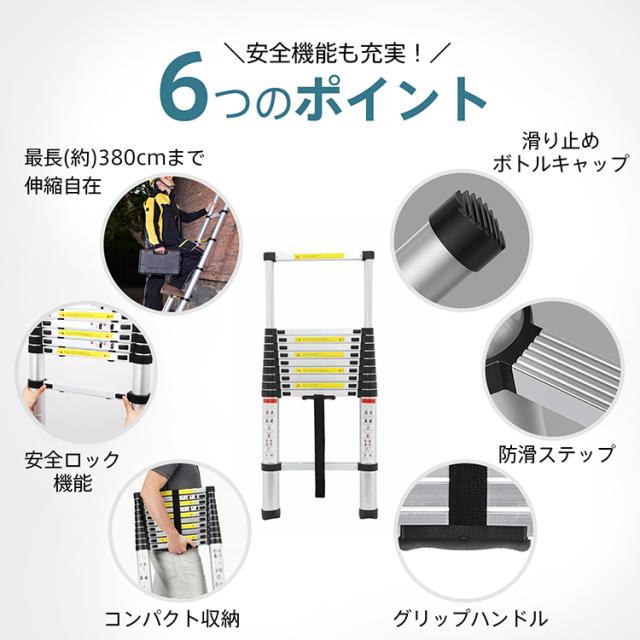 伸縮 伸縮梯子 はしご 3.8m 梯子 折り畳み アルミ製 パワフルラダー アルミはしご コンパクト zk096