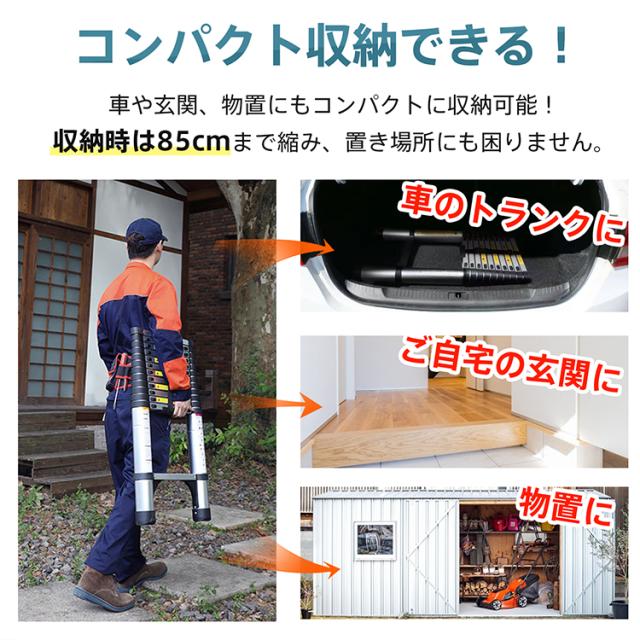 - コンパクトで3メートルまでいけるはしごを探していて良いのが見つかり良かったです。 発送も早くクーポンも使えて尚良かったです。