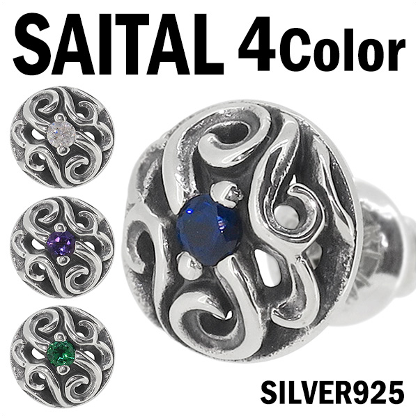 【SAITAL】アラベスク 唐草 ストーン シルバーピアス シルバー925 メンズ 男性用 ピアス 片耳 ブランド