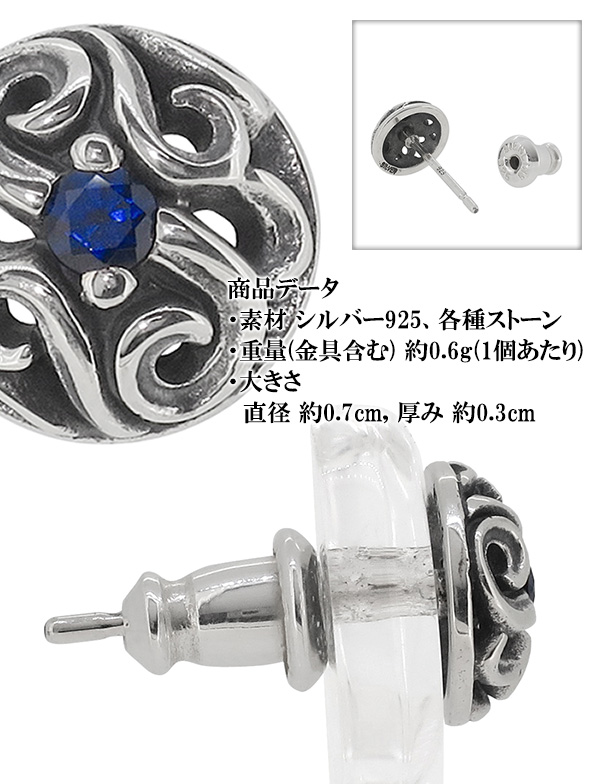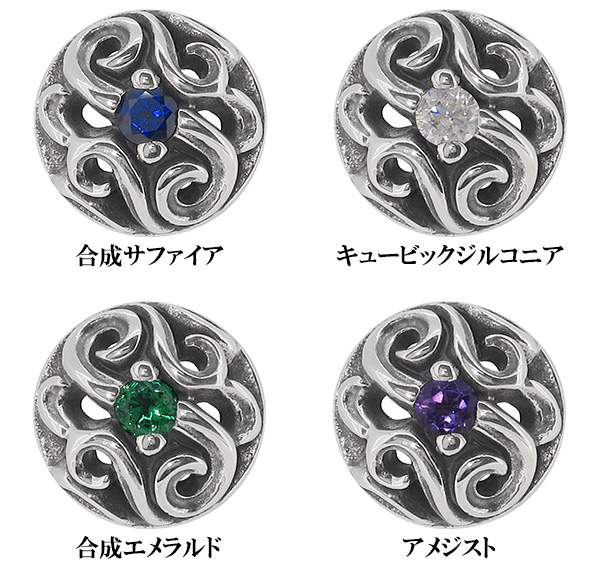 ハード メンズ ピアス カラーストーン 唐草 シルバー925 シルバーアクセサリー メンズピアス 男性用ピアス