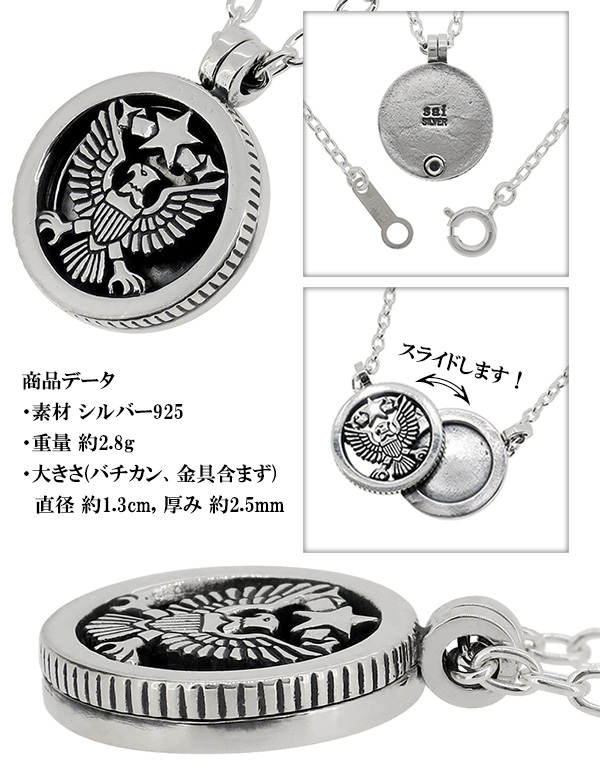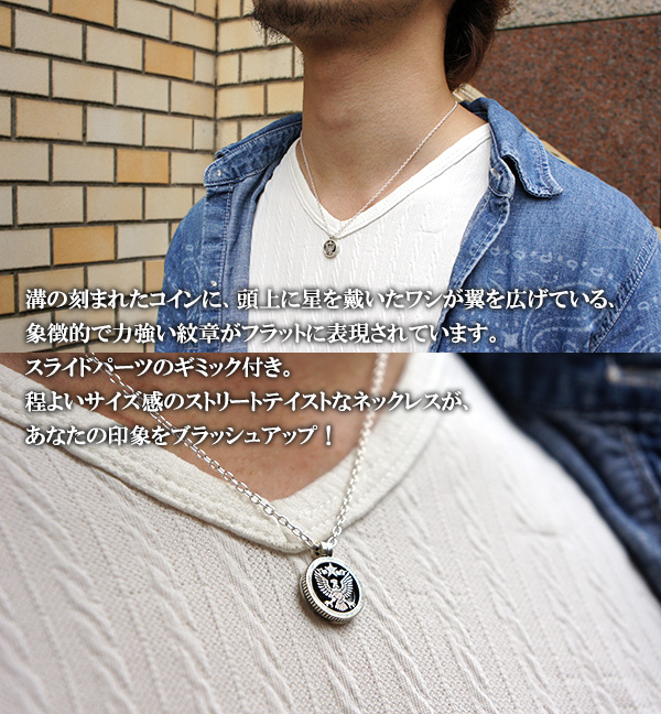 イーグル・スターモチーフのコイン型シルバーネックレスです。