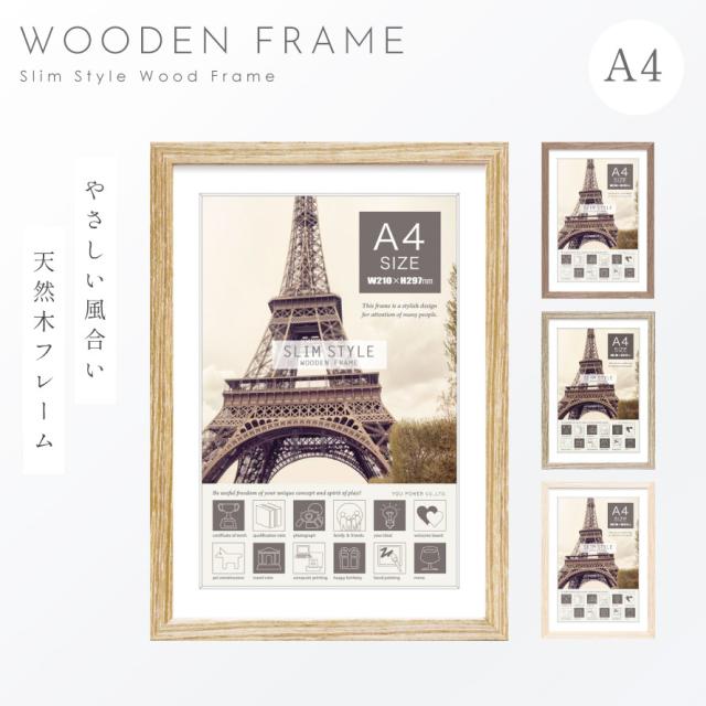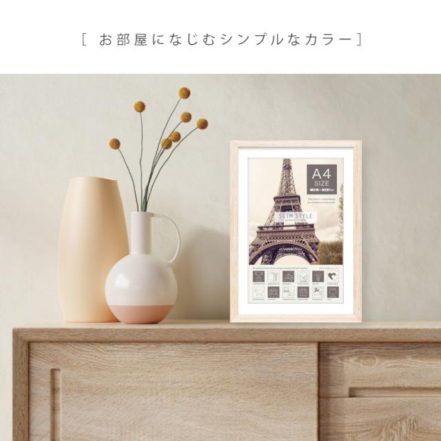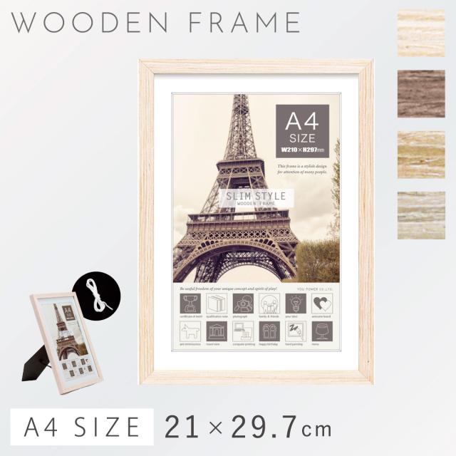 天然木の風合いや愛着・温かみを感じられるA4サイズ用フォトフレーム。写真以外にもアート作品を飾るのにもおすすめです。