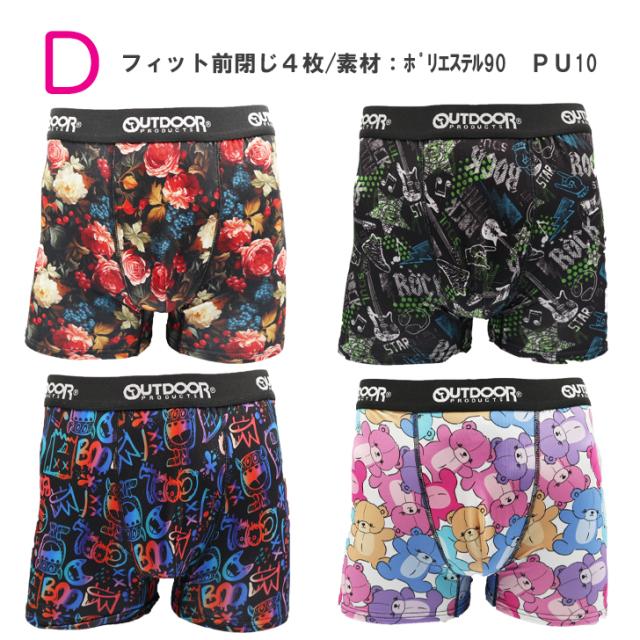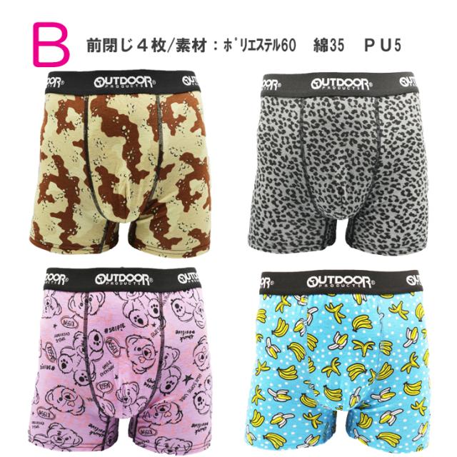 【OUT4枚】OUTDOOR メンズ ボクサーパンツ5種柄固定 4枚組 送料無料 前閉じ アソート M L LL