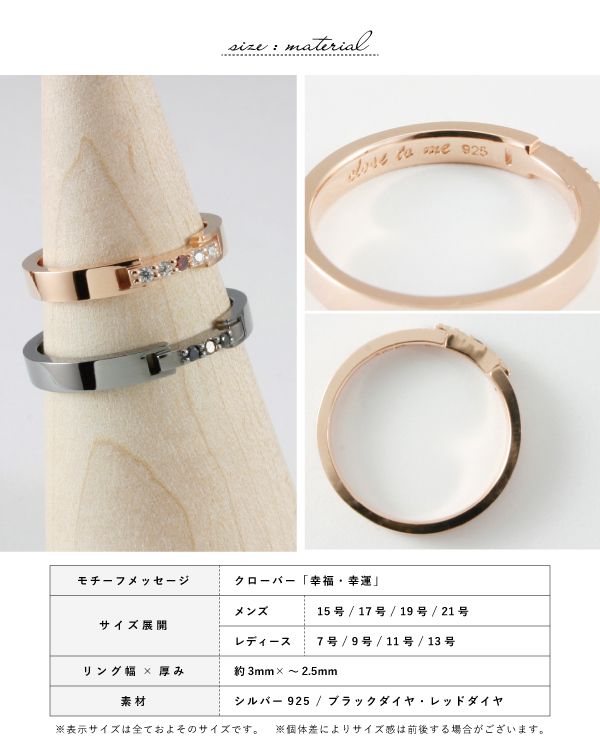 ペアリング リング 指輪 シルバー925 クローバー レッドダイヤ レッドダイア ダイヤモンド ダイアモンド 刻印 close to me テディベア ペア メンズ レディース ギフト 結婚指輪 マリッジリング カップル