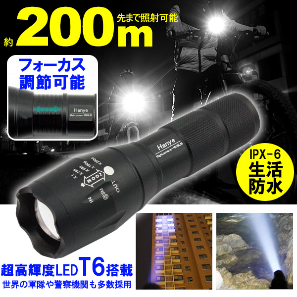 超高輝度LED T6搭載超強光ズームライト ネコポス送料無料 ポイント消化
