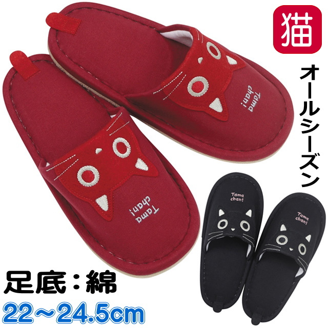 スリッパ 猫 フェイス たま たまちゃん コットン オールシーズン ルームシューズ ノアファミリー 猫柄 ねこ ネコ レディース かわいい