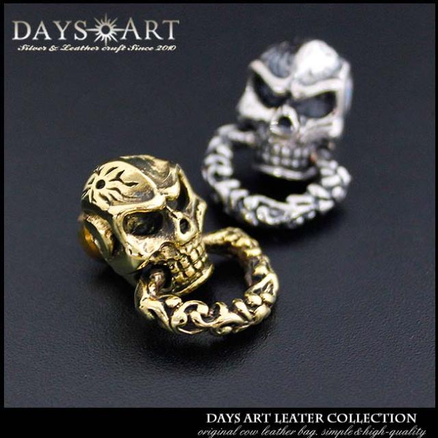 ブラス ピューター スカルドロップハンドル アラベスク模様 ハードデザイン ドクロ 真鍮 シルバーアクセ サイドコンチョ ウォレットチェーン用に 長財布 レザーウォレット カスタムパーツ 革財布 コンチョのみ 【ギフト】 dhb019