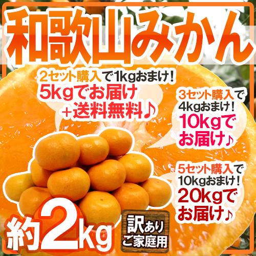 ”和歌山みかん” 訳あり 約2kg 大きさおまかせ《2セット購入で1kg+送料無料、3セットで4kg、5セットで10kgおまけ》【予約 11月末以降】
