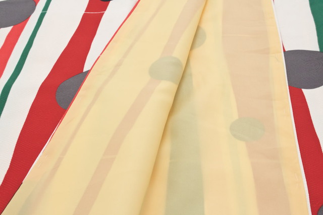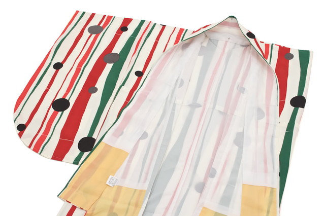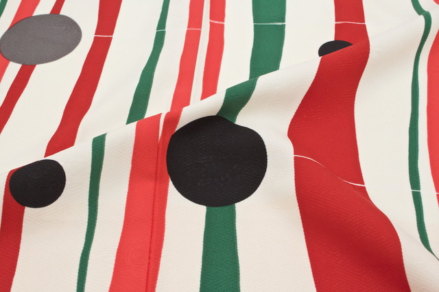 よろけ縞に水玉が浮かぶアートモダンな柄ゆきです。