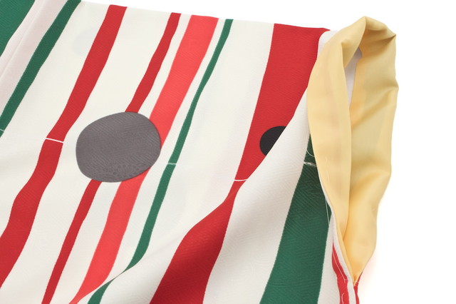 袴用二尺袖着物 ブランド bonheur saisons(ボヌールセゾン) 白 アイボリー 赤 緑 黒 よろけ縞 水玉 ドット アートモダン 小振袖 卒業式 謝恩会 女性 レディース 仕立て上がり