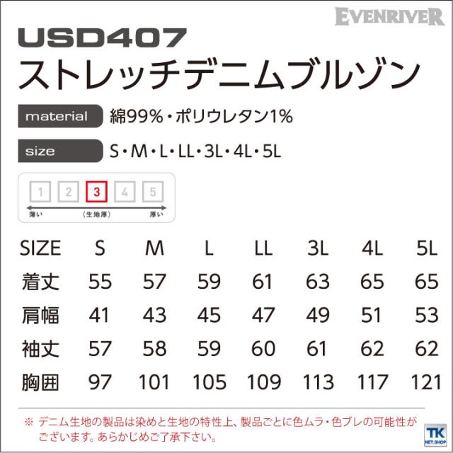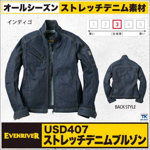 ストレッチデニムブルゾン イーブンリバー デニムジャケット 作業着 作業服 カジュアル ユニフォーム ブルゾン 春夏 秋冬 EVENRIVER 長袖 er-usd407