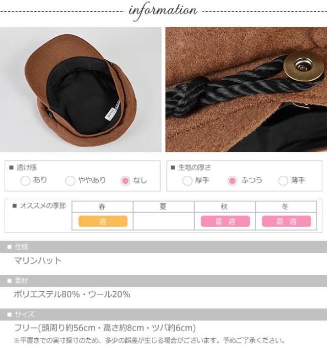 キャスケット ゆうメール便送料無料 キャスケット レディース マドロスハット マリンハット 帽子 ハット 紫外線対策 UV対策 ウールボタンロープマリンハット