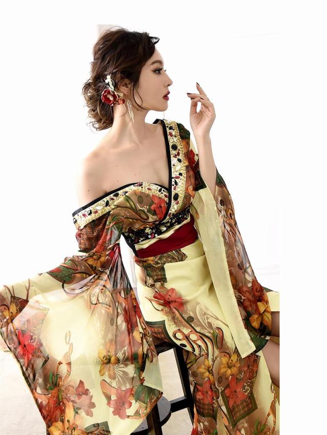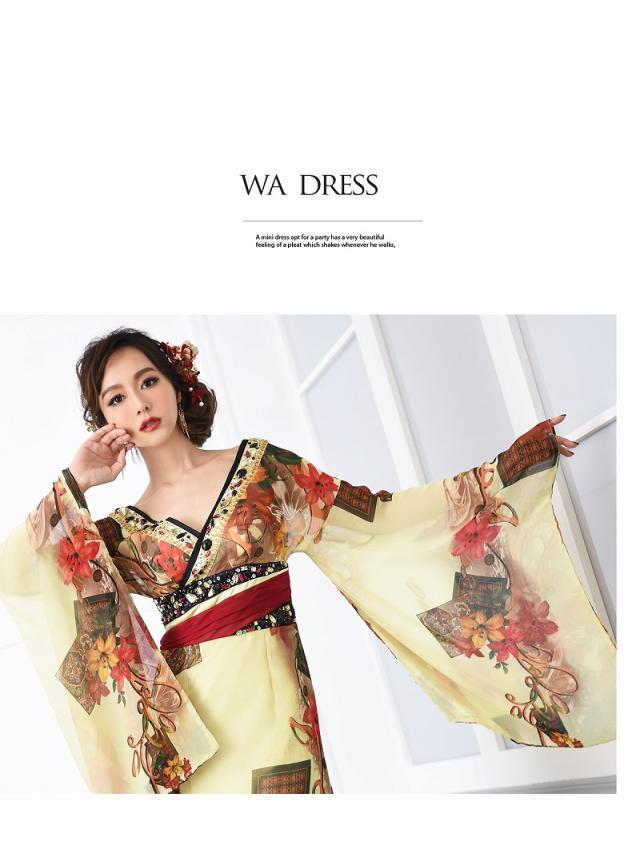 ☆中ミニドレスだから、はだけすぎる心配もなく大胆な美脚魅せが出来るシフォンドレスはキャバ嬢さん必見の花魁ドレス。