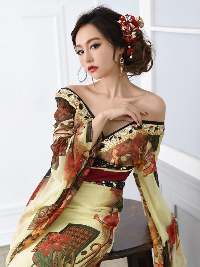 ☆大きいサイズXL(13号)まで展開している和ドレスはキャバクライベントは勿論、コスプレにも大活躍なビジュー振袖ドレス。