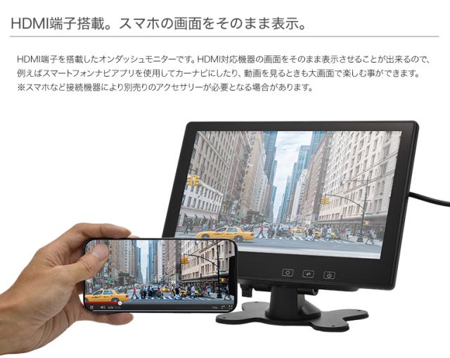HDMI入力端子を搭載したオンダッシュモニターです。