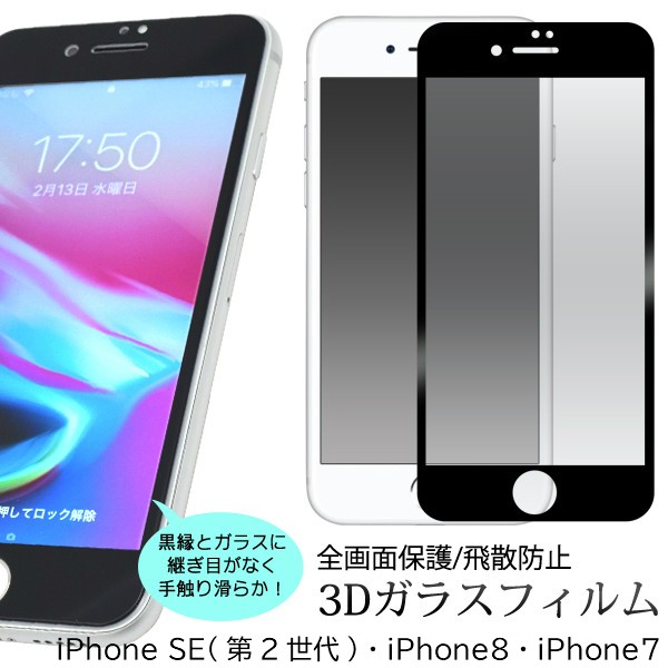 iphonese iphone se 2020 第2世代 iphone8 ガラスフィルム 全面 3d iphone7 フィルム ガラス 全面保護 アイフォン8 液晶保護フィルム アイフォン7 保護フィルム 強化ガラスフィルム 薄型 飛散防止 自己吸着 貼りなおし ip7