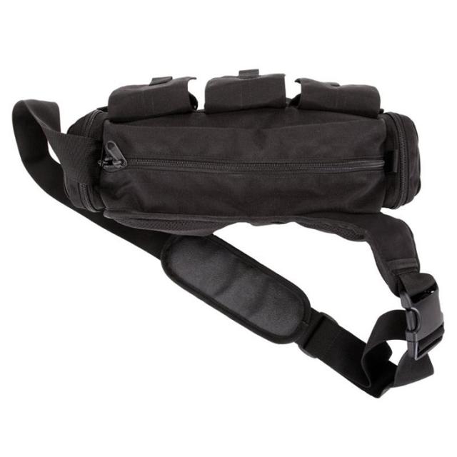 フロントベルクロ式フラップポケットには合計6個のM4又M16はマガジンを収納可能。バック両サイドに小物を収納可能なジッパーポケットが付属。バッグ背面部とショルダーパッドには、ムレを抑えるメッシュパッドを装備。ショルダーストラップはクイックリリースバックルが付属。耐候性・耐摩耗性に優れた1050デニールナイロンをを使用しています。