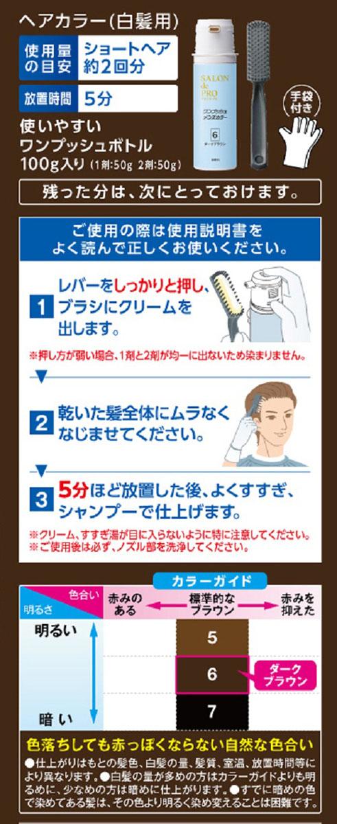 サロンドプロ ワンプッシュメンズヘアカラー 6 ダークブラウン(1セット)[白髪染め 男性用]