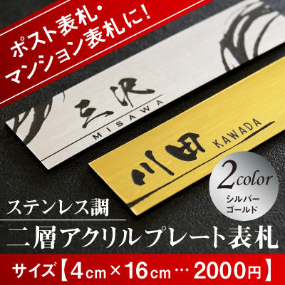表札 アクリル おしゃれ プレート 名入れ 名前 シール ポスト マンション二層アクリルプレート表札 4×16…2000円 翌々営業日出荷 表札付きポスト ネームプレート ステンレス調 アクリル表札