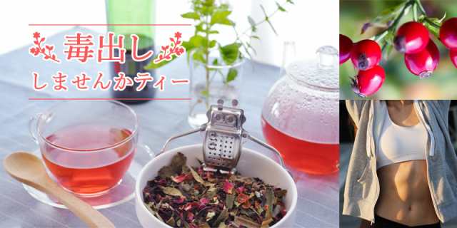 ・名称:毒出ししませんか テトラパック ・原材料名:ローズヒップ(チリ)、ハイビスカス(スーダン)、ペパーミント(アメリカ・エジプト )、ビワ葉(日本)、ローズレッド(パキスタン) テトラパック2.0g×12包