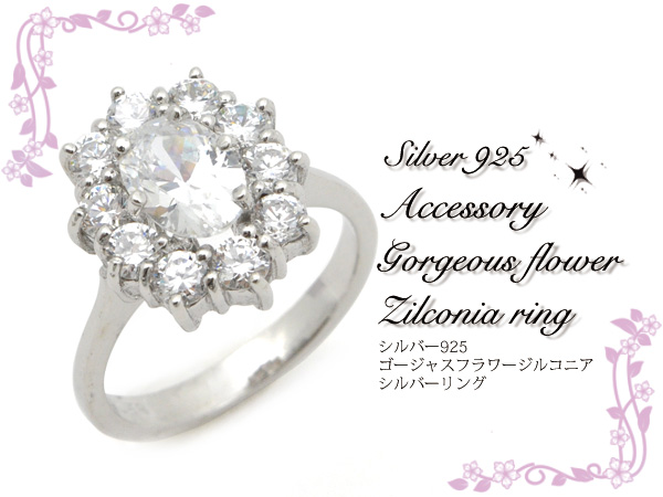 SALE価格 silver925 ゴージャスフラワー キュービックジルコニア付 シルバーリング シルバー925 指輪