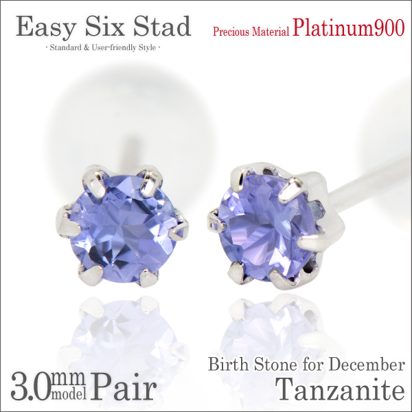 タンザナイト ピアス 送料無料 Pt900プラチナ 3mm 薄型6本爪 スタッド 両耳ペア ダブルロックキャッチ付