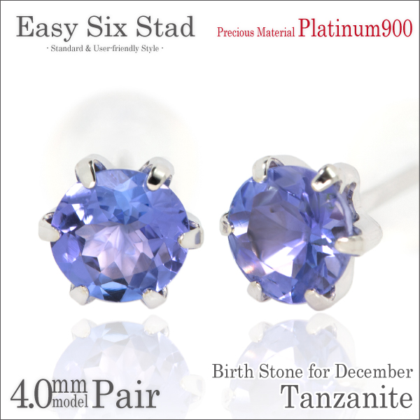 タンザナイト ピアス 送料無料 Pt900プラチナ 4mm 薄型6本爪 スタッド 両耳ペア ダブルロックキャッチ付 宅配便