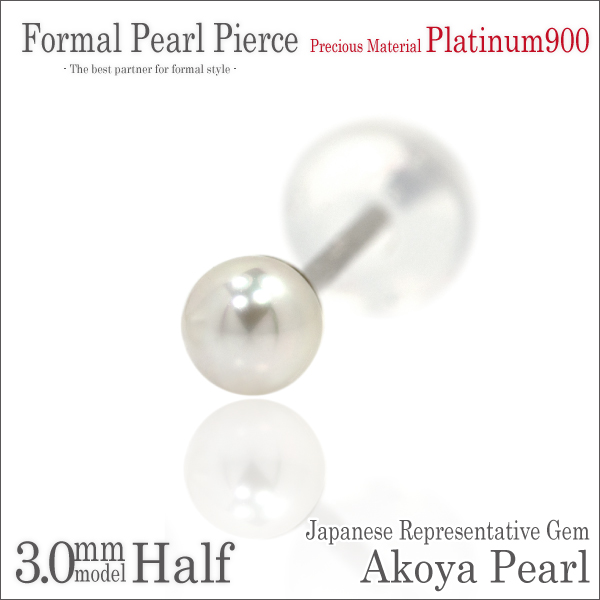 送料無料 Pt900プラチナ 本真珠 アコヤパール 3mm珠 フォーマルスタッドピアス 片耳単品 ダブルロックキャッチ付