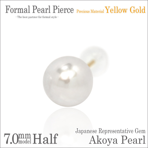 送料無料 K10 イエローゴールド 本真珠 アコヤパール 7mm 珠 フォーマルスタッド ピアス 片耳単品 ダブルロックキャッチ付