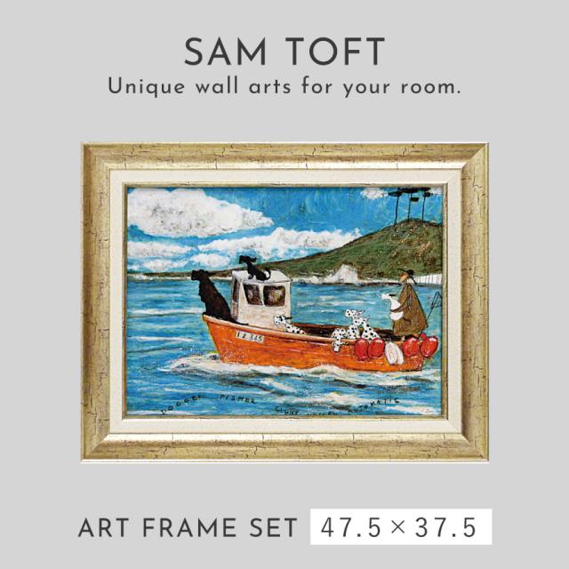 サムトフト 絵画 絵 47.5×37.5cm 【犬と釣り人と小さな船】 アートパネル アートフレーム 壁掛け おしゃれ 犬 アートボード インテリア ポスター インテリア 絵 モダン 大きい 大型サイズ アンティーク 玄関 飾る イギリス作家 ST-08022 ギフト プレゼント 新築祝