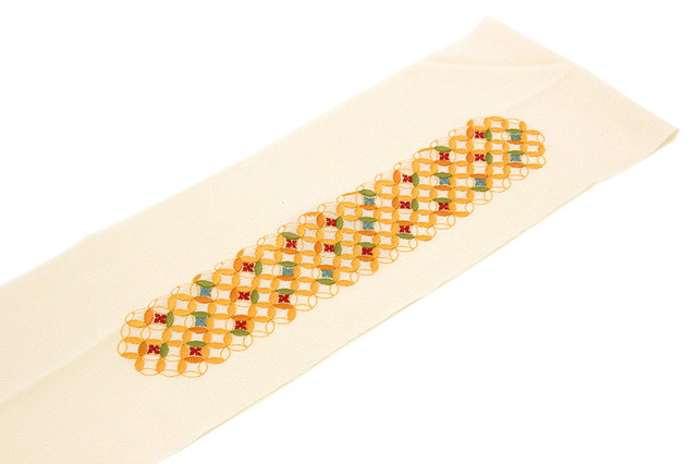 半襟 振袖 刺繍 成人式 半衿 白 アイボリー 橙色 オレンジ 七宝繋ぎ 亀甲 桜 さくら サクラ 花 ワンポイント 縮緬 ちりめん フォーマル カジュアル 日本製 送料無料
