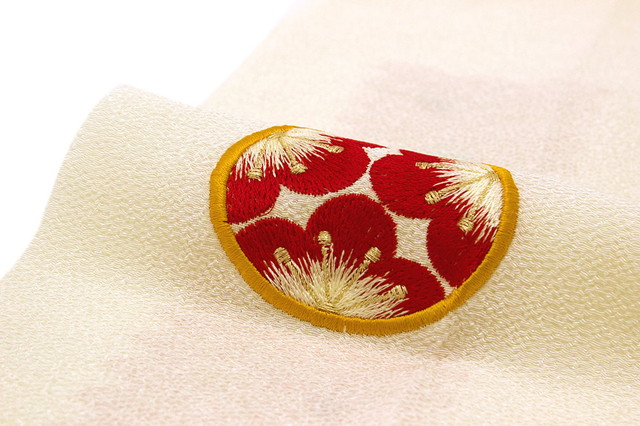 上品な縮緬の生地に、青海波と丸に梅の花が刺繍されています。
