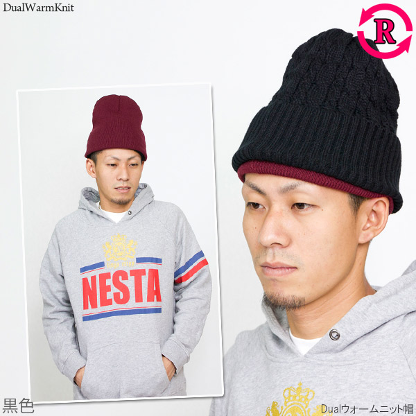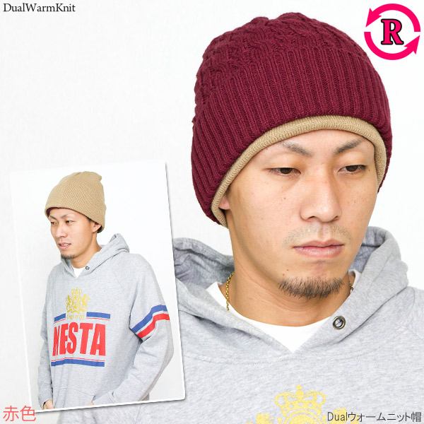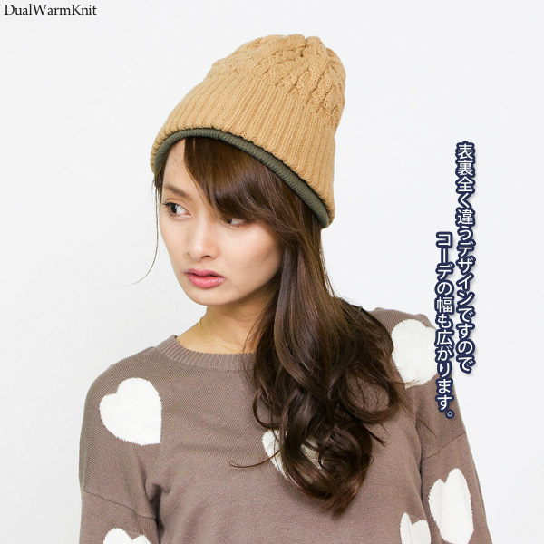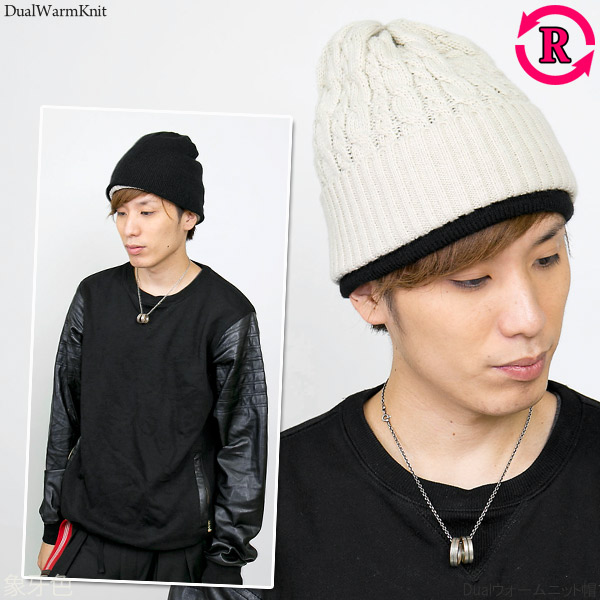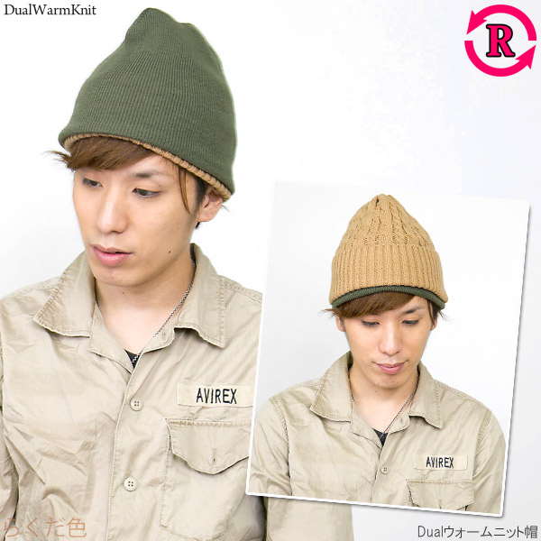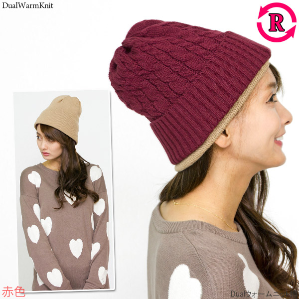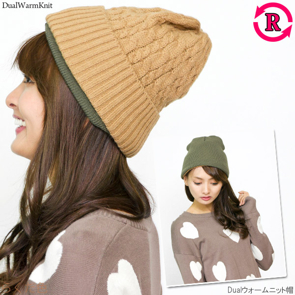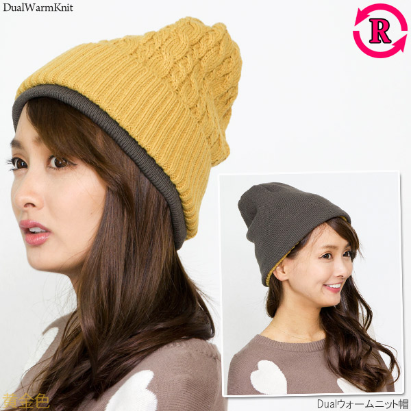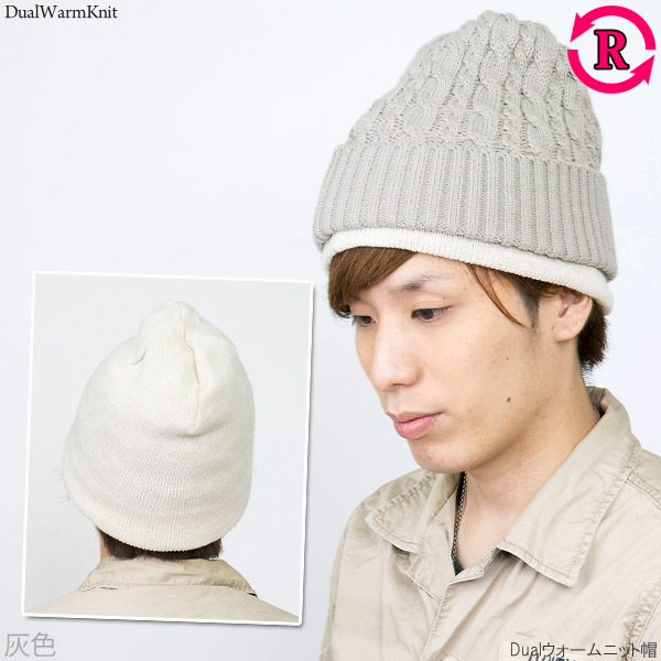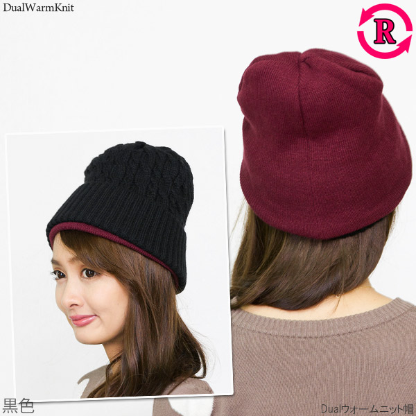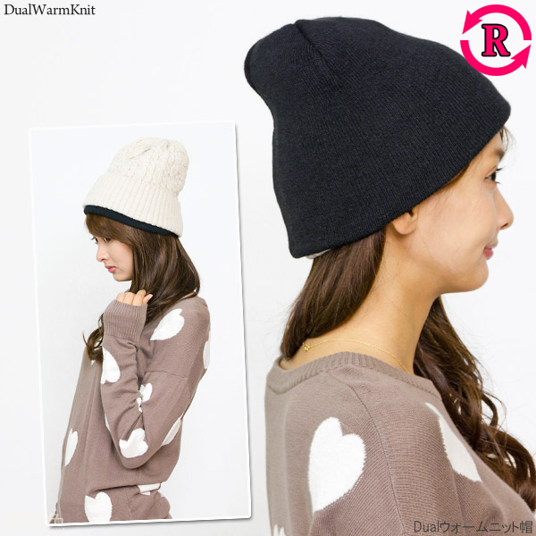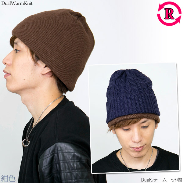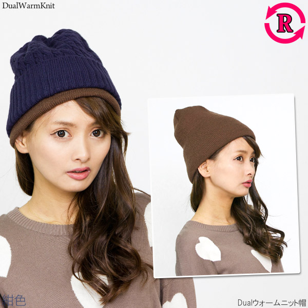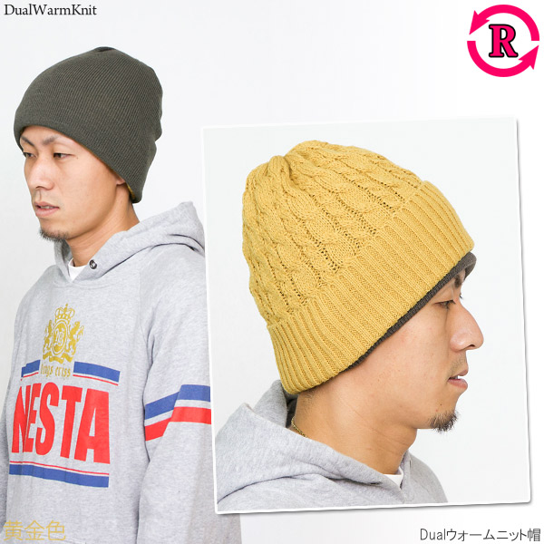 ニット帽 レディース [メール便可] 帽子 メンズ 厚手 秋冬 リバーシブル 防寒 スキー スノボ / Dualウォームニット帽