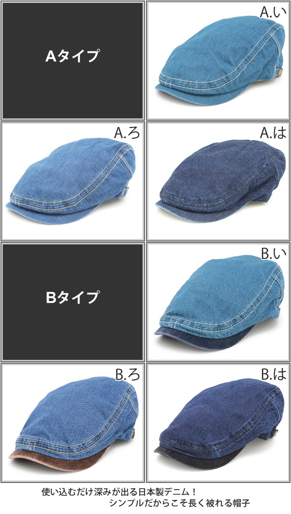 ※Aタイプは、オールデニム仕様。Bタイプは、つば部分とサイドスナップ部分がコーデュロイの仕様になっています。