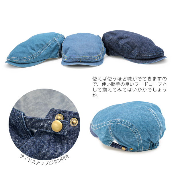 ハンチング 日本製デニム [メール便可] 帽子 メンズ レディース 春夏 秋冬 ゴルフ サイズ調節 / Japanデニムハンチング
