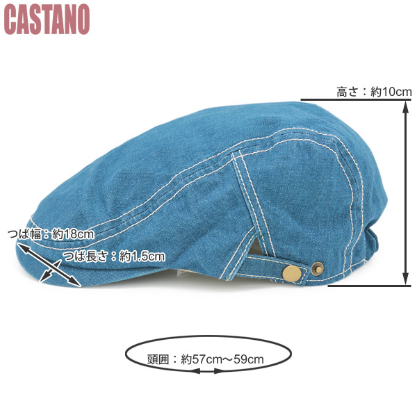 サイズ表記57〜59cm(頭囲:57〜59cm[後部にゴムを使用]、高さ約10cm、つば:長さ約1.5cm・幅約18cm)