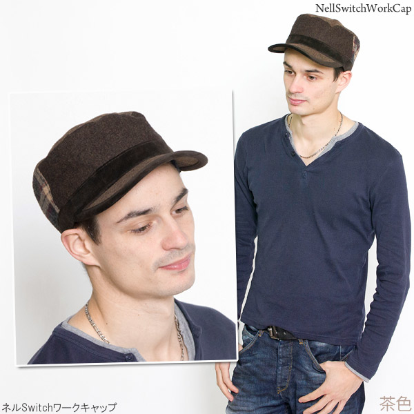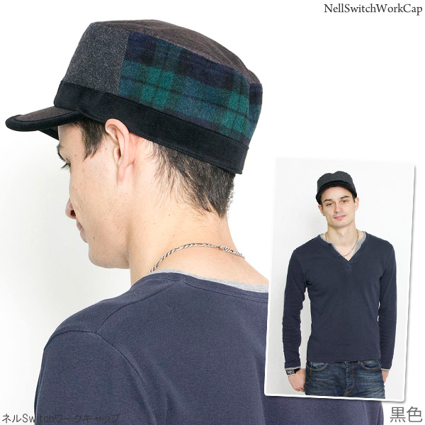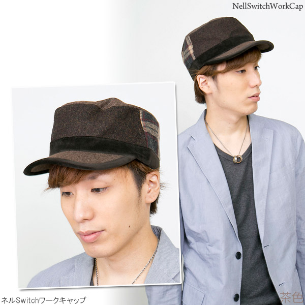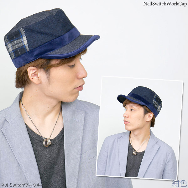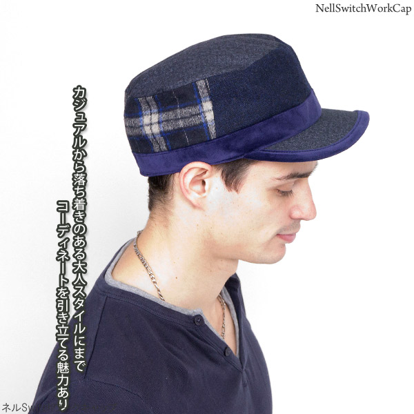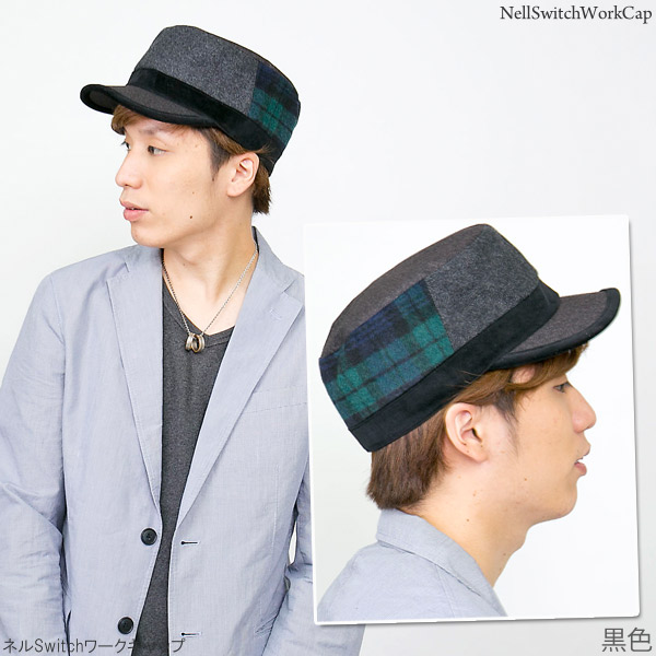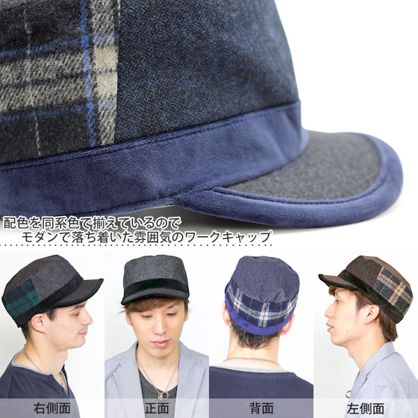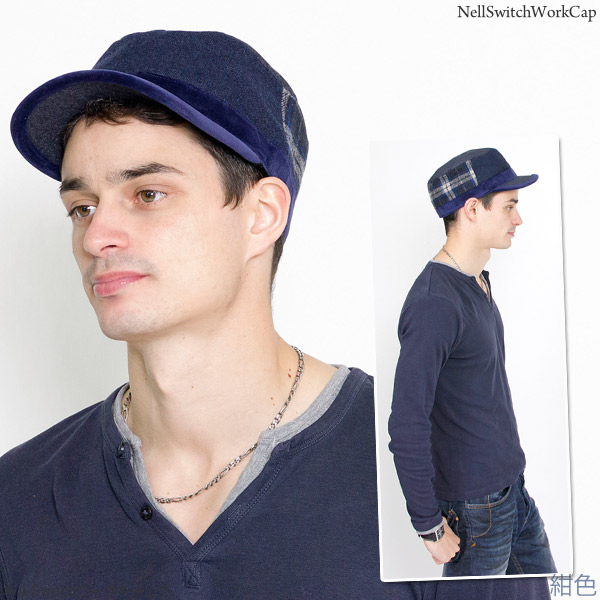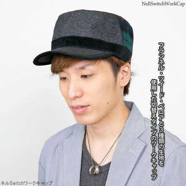 ワークキャップ メンズ [メール便可] 帽子 秋冬 CAP シンプル ツイード ベロア サイズ調整 / ネルSwitchワークキャップ