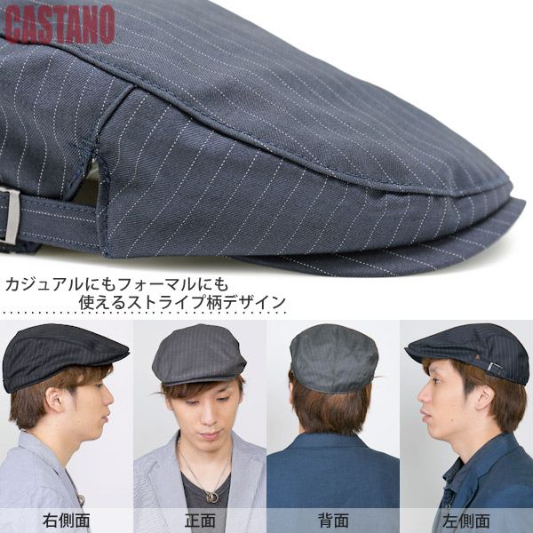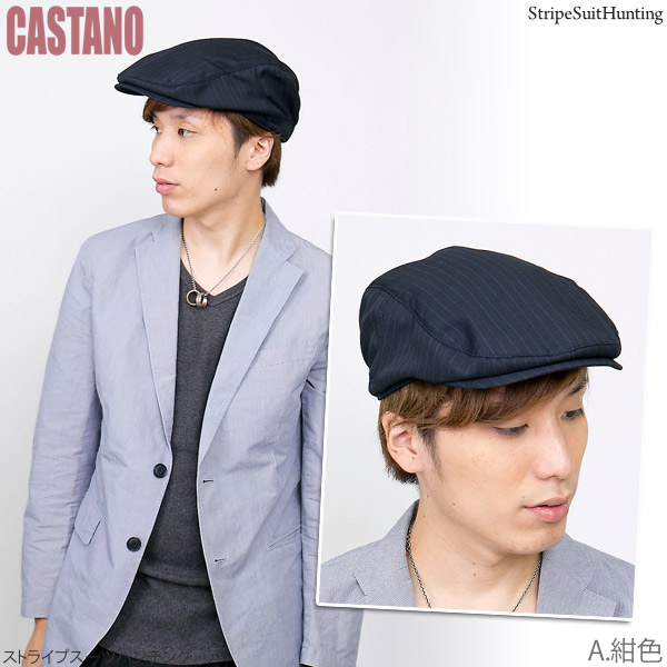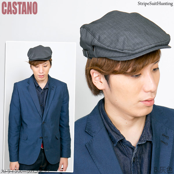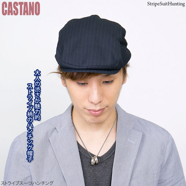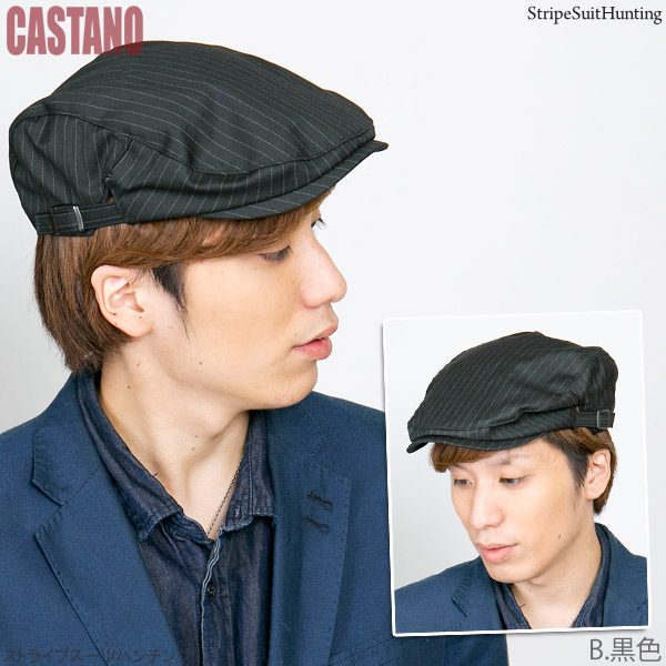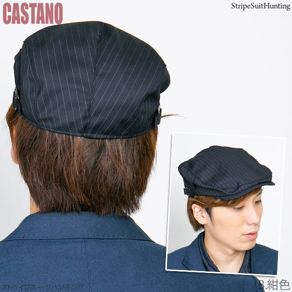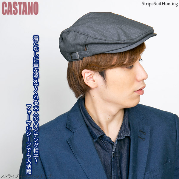 ハンチング ストライプ [メール便可] 帽子 メンズ 秋冬 ゴルフ サイズ調節 アジャスター / ストライプスーツハンチング