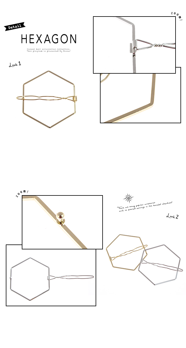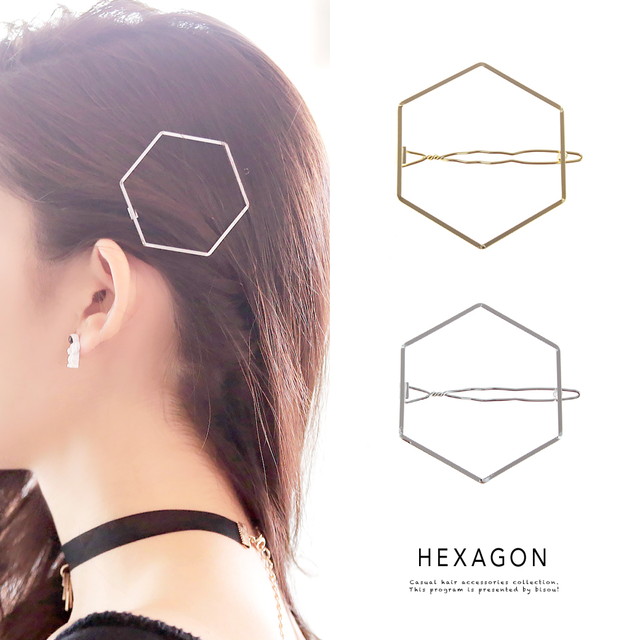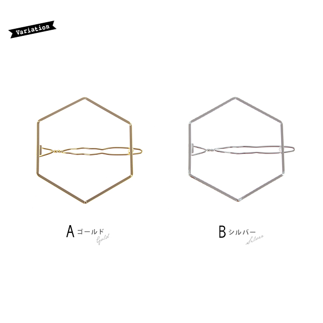 【シンプルな六角形モチーフのメタルダボピン】ヘキサゴン/多角形/ポリゴン/ゴールド/シルバー/メタリック/ローマピン/ヘアアクセサリー
