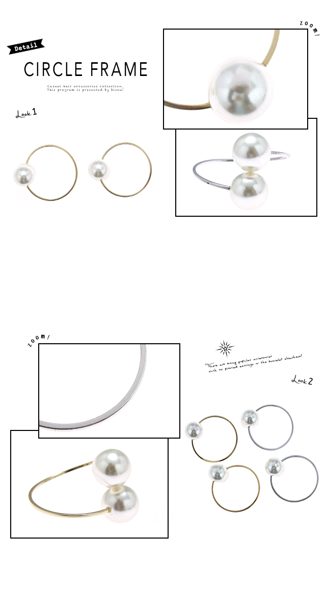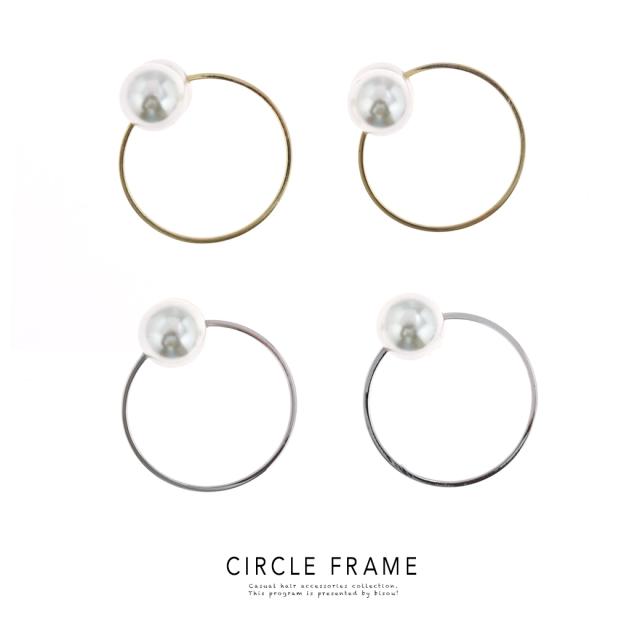 【シンプルなサークルフレームのイヤーカフ】イヤリング/パール/円形/メタル/シンプル/パーティー/結婚式/イアリング/耳飾り