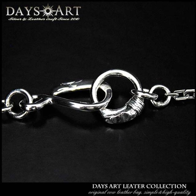 純銀製のデザインチェーンになります。シルバー925のシンプルなスクエアあずきチェーンに矢を丸めた形のリングにイーグルの頭がデザインされたフックが留め具になっています。エンドにさりげないネイティブデザインを用いたおしゃれなシルバーチェーンです。